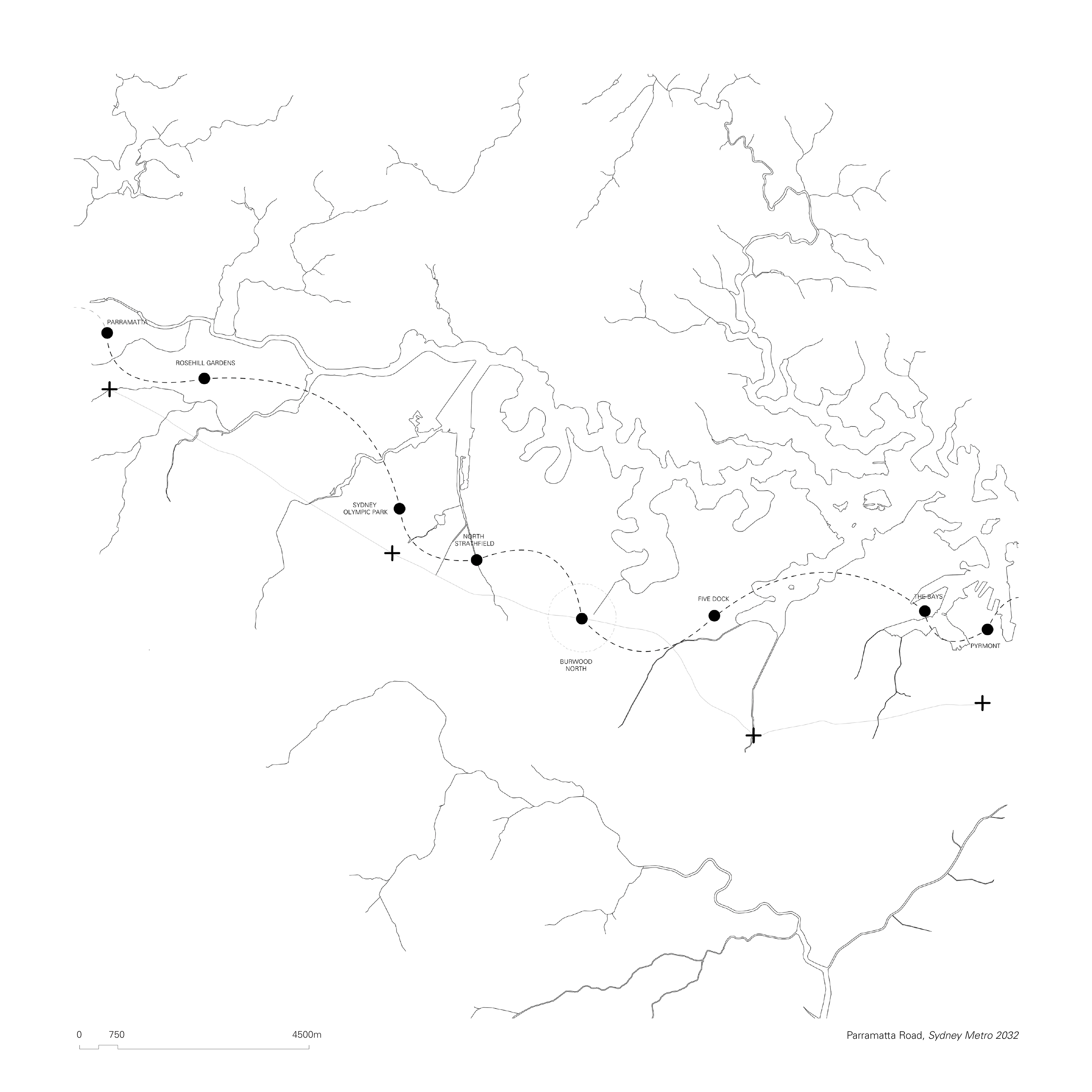 Such intersection points offer a unique opportunity not only to re-establish our built form in relation to the cultural heritage of the land, but also as a means to introduce landscape corridors which can reconnect Parramatta Road to the harbour shoreline. Three locations along the road have been identified for our proposal: Summer Hill, at the intersection with the Hawthorne Canal; Lidcombe, towards Haslams Creek; and Burwood North, at the junction with Burwood Road. The latter has been further developed as a case study for future applications.